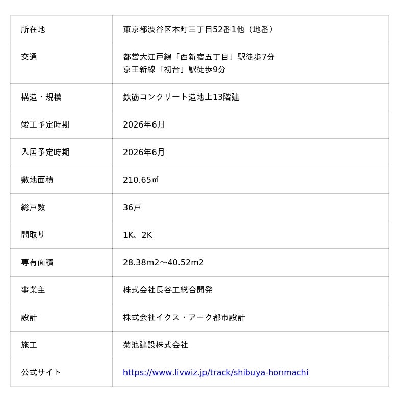 株式会社長谷工総合開発(本社:東京都港区、代表取締役社長:宮原 昭)は、コンセプト賃貸マンション「LIVWIZ」シリーズの一つで、次世代クリエイターの感性を刺激するデザイナーズ防音マンションブランド「TRACK(トラック)」シリーズの第4弾となる「TRACK渋谷本町」(以下「本物件」)の入居申込を11月4日(火)より受付開始しましたので、概要等をお知らせいたします。