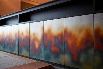 【西村商店の焼箔を使用した客室のキャビネット】