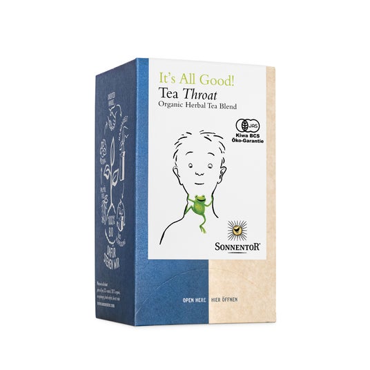 【イッツオールグッド ティー スロート】 『喉にかえるがいる』ドイツでは乾燥でイガラっぽいとき、こんな表現をつかい ます。喉をなめらかに潤したい時や乾燥が気になる日のおやすみ前にはこの一杯。 リンデン、エルダーフラワー、オオバコ、マロウでホッと一息。 楽しいおしゃべりや、心地よい読書時間にも。18袋1,296円(税込)