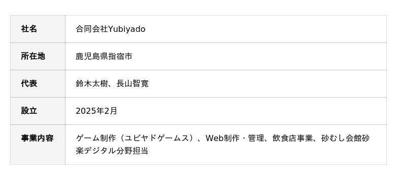 Email:info@yubiyado.kagoshima.jpInstagram:@yubiyado.games