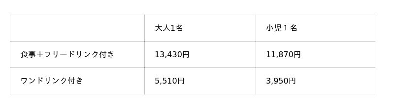 大人 1,700円、小児 850円 (運賃込み料金 大人 3,130円 小児 1,570円)