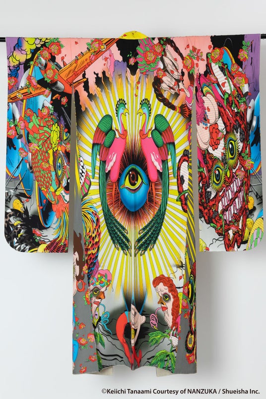 田名網は多数の着物をデザインしており、本作はそのなかから数点を集英社マンガアートヘリテージで仕立てたものです。