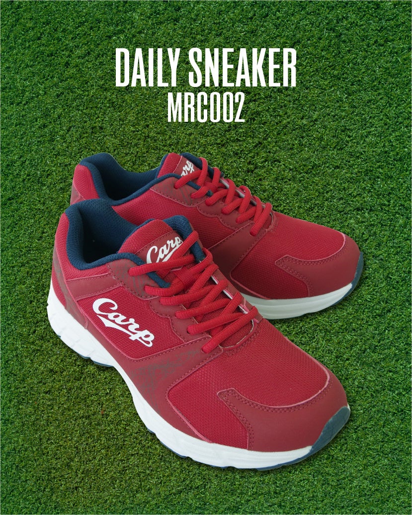 ■デイリースニーカー(MRC002)広島東洋カープと広島化成のコラボシューズ。鮮やかなレッドを基調とし、カープロゴを大きくあしらったデザインでカープ愛をアピール できます。軽量・衝撃吸収・通気性に優れ、スタジアム応援はもちろん、普段使いやスポーツにも適した快適な履き心地です。