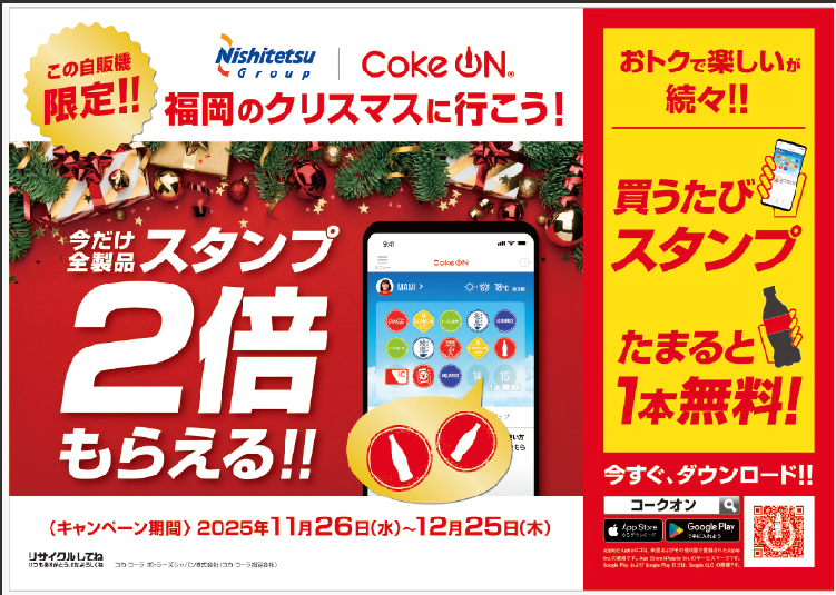 期間中、対象の自動販売機にて「クリスマスWスタンプキャンペーン」を実施いたします!