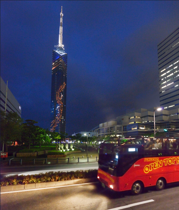 ※(出発)福岡市役所⇒博多駅⇒キャナルシティ博多⇒冷泉公園⇒都市高速(呉服ランプ~百道ランプ)⇒福岡タワー(降車可)⇒福岡市役所(到着)