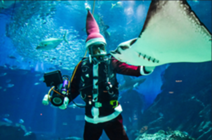 外洋大水槽ではサンタクロースに扮したダイバーが魚たちにエサのプレゼントを行うほか、お客さまがサンタダイバーと記念写真が撮れる場もご準備します。