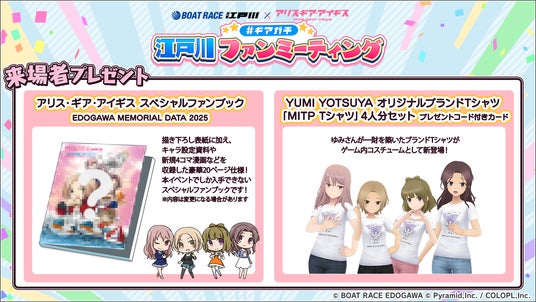 アリスギアの未公開設定資料などが掲載されたスペシャルファンブックや、ゲーム内キャラクター用新衣装「MITP Tシャツ」が入手できるシリアルコード付き舟券風カードなど、本イベントでしか入手できない豪華特典をご用意!