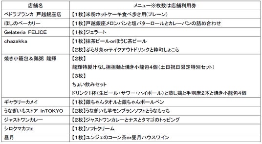 エリアの対象店舗(36店舗)で利用できる店舗利用券がセットになった企画乗車券