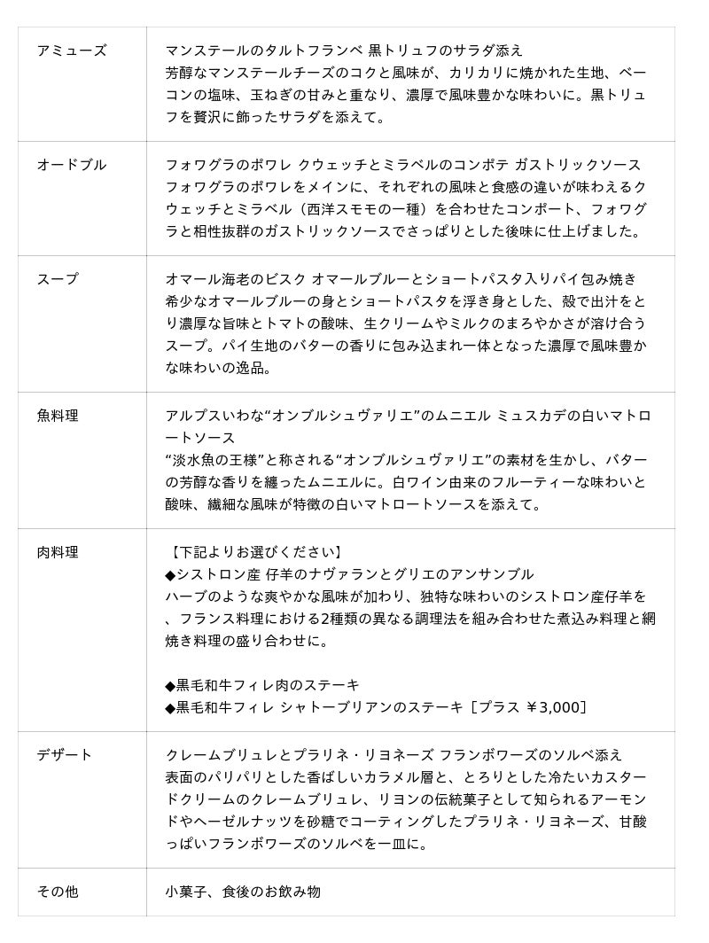 「フランス産高級食材で織りなす冬の特別コース」