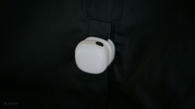 手ぶらのときは、上着のポケットにもよくつけます。クリップも強力で、何かの拍子に落ちることは滅多にありません。