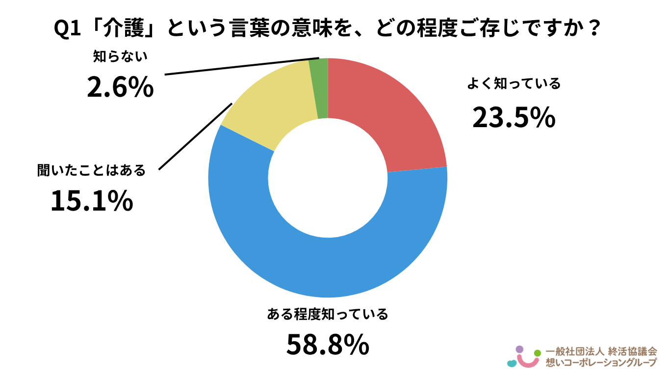 Q1. 「介護」という言葉の意味を、どの程度ご存じですか?・よく知っている 23.5%