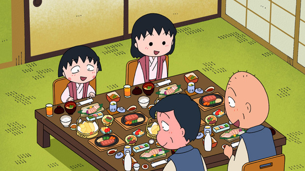 さぬきうどんを美味しそうに食べるまる子たち。© さくらプロダクション / 日本アニメーション