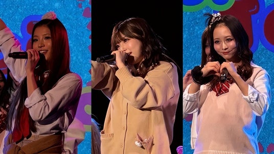 そして、作詞作曲・松隈ケンタによるデビューシングル「涙のストーリーテラー」では、感情を込めた歌声と誰かの背中を押すような力強いメロディが会場全体を包み込みました。その後も、「オトナヒロイン」「HAPPY CLIMAX」「Toi Toi Toi」といったポジティブな楽曲が続き、彼女たちの魅力が全開のステージとなりました。