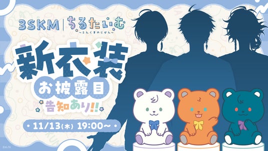 また、『ちるたいむ~さんくまのじかん~』グッズの発売を記念し、2025年11月13日(木) 19時より、にじさんじライバーの北見遊征、魁星、榊ネスの3名によるユニット「3SKM」の新衣装お披露目配信を実施!