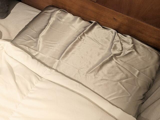 シルクの質感が髪の摩擦をやわらげてくれて、髪が枕に引っかかる感じが少なく、やはり綿素材とは違う印象です。
