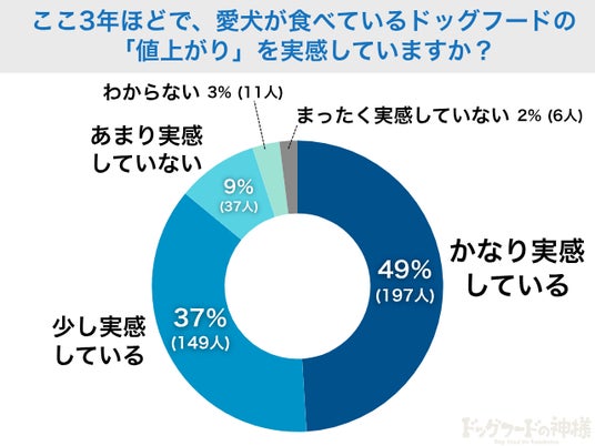 調査の結果、全体の9割弱が「ドッグフードの値上がりを実感している」と回答。