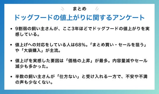調査では、約半数の飼い主さんが「値上げはある程度仕方がない」と考えていることが分かりました。