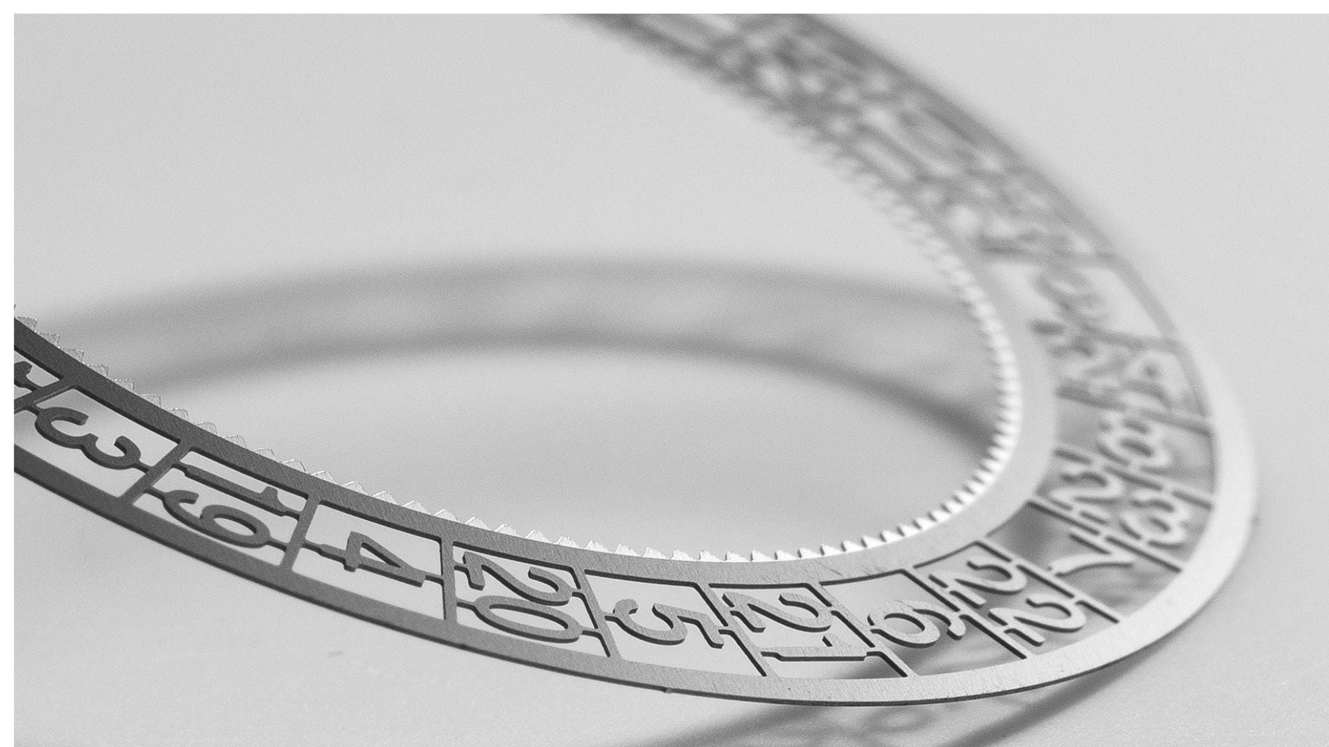 上半分は表面から放射状、下半分は裏面から水平にカットしたサファイアガラスベゼルで、月光と水面の煌めきを表現。一つひとつ職人が手作業で仕上げています。