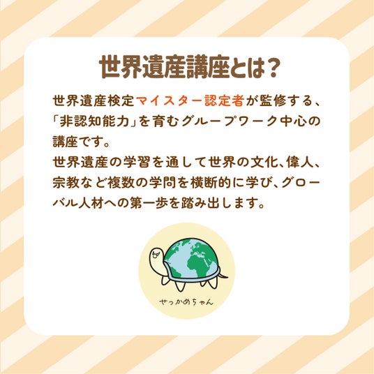 株式会社 学研ホールディングス(東京・品川/代表取締役社長:宮原博昭)のグループ会社、株式会社 学研スタディエ(さいたま市/代表取締役社長:亀谷眞宏)は、2025年12月6日に「世界遺産講座12月無料トライアル」を開催いたします。