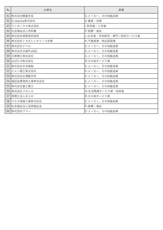 働きやすい職場づくりに取り組む京都企業 60社(うち理系企業10社)