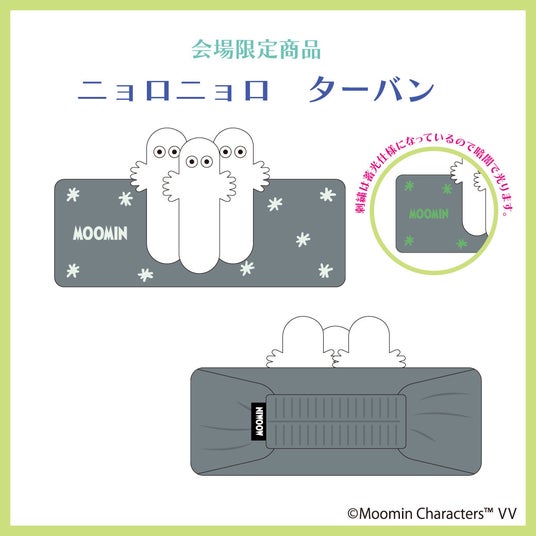 ムーミンの人気キャラクター「ニョロニョロ」がターバンになって登場!ふわふわの質感と愛らしいデザインで、お風呂上がりやメイク時間を楽しく彩ります。中央には仲良く並んだニョロニョロたちが立体的にデザインされており、お花のようなモチーフが散りばめられています。