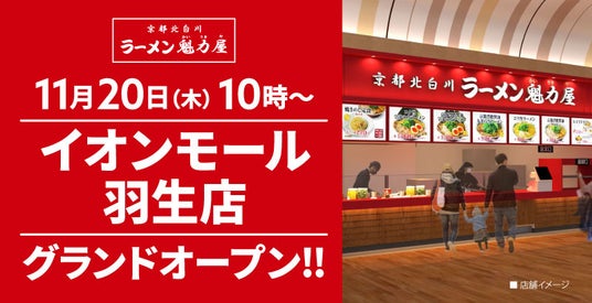 京都北白川ラーメン魁力屋をチェーン展開する株式会社魁力屋(https://corp.kairikiya.co.jp/本社:京都市中京区、代表取締役社長:藤田 宗、以下魁力屋)は、2025年11月20日(木)に「京都北白川 ラーメン魁力屋 イオンモール羽生店」を埼玉県羽生市にグランドオープンいたします。