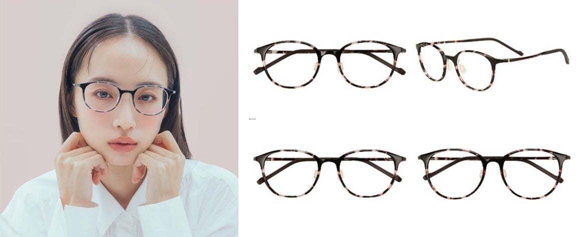 「メガネとメイクでつくる、目もとぱっちり多幸感フェイス」をテーマに、資生堂ヘアメイクアップアーティストのノウハウを取り入れて企画された、メイクとアイウェアを融合させた3色、各色ともボストン型の、ジャストフィット、レギュラーフィット、ワイドフィットの3型展開の全9種のラインアップです。