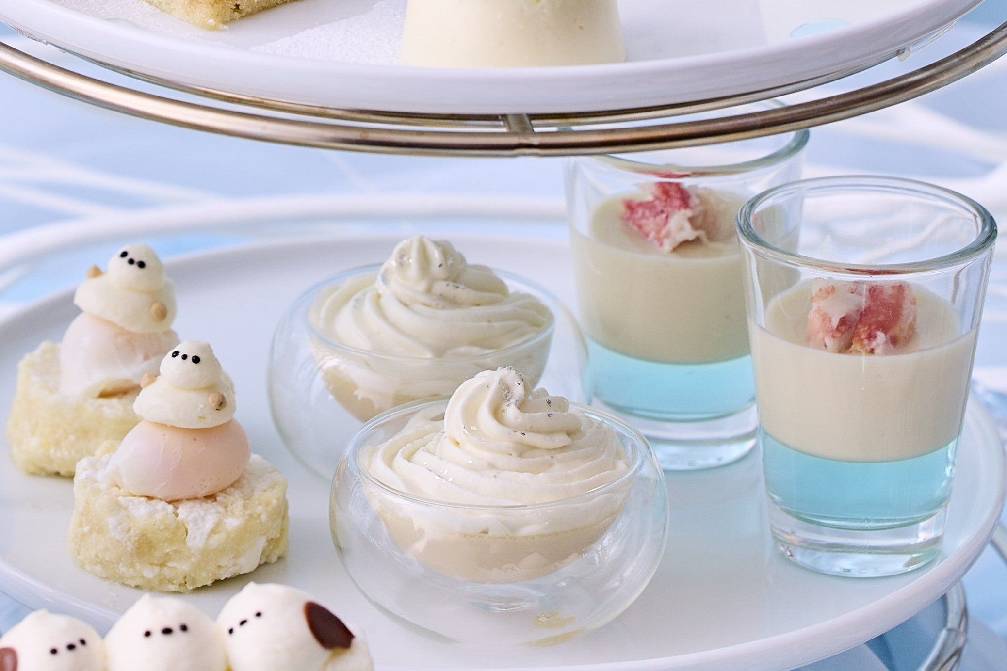 北海道産のフロマージュブランで作ったムースや、スノードームをイメージした幻想的なゼリー、仲良く寄り添うシマエナガ団子が乗ったケーキなど、愛らしさ溢れるスイーツが勢揃い。今回の注目は揺れる!ぷるぷるシマエナガゼリー♪