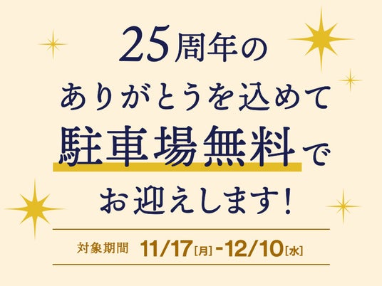 【駐車場が無料に!~25周年のありがとうを込めて~ 】