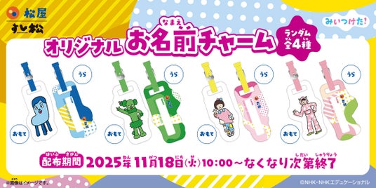 対象メニュー1品のご注文につき、松屋×「みいつけた!」コラボ限定「オリジナルお名前チャーム」(デザインは全4種類)を1個、ランダムでプレゼントします。