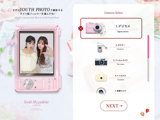 1.友達との自然な笑顔や空気感をそのまま残せる新機能「YOUTH PHOTO撮影」『YOUTH MY PALETTE』では、通常のプリ撮影後に、プリとは異なる雰囲気の撮影が楽しめる新機能「YOUTH PHOTO撮影」を搭載。その日に撮りたいカメラ風フィルターで“青春”を可愛く、自然体で残せる特別な撮影体験をお届けします。