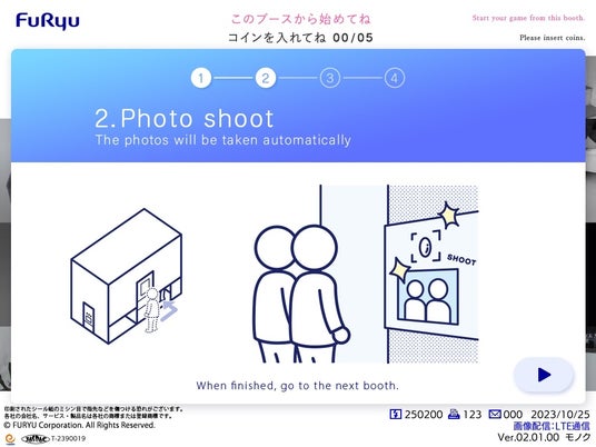 外国人観光客に向けた「遊び方説明」を搭載。コイン投入前に操作説明ボタンを押すと、簡単なプリ機の操作方法や撮影の流れを確認することができるようになりました。言語は、英語・中国語(簡体)・中国語(繁体)・韓国語・タイ語・ベトナム語を搭載します。日本語が分からなくても様々な方に撮影をお楽しみいただけます。