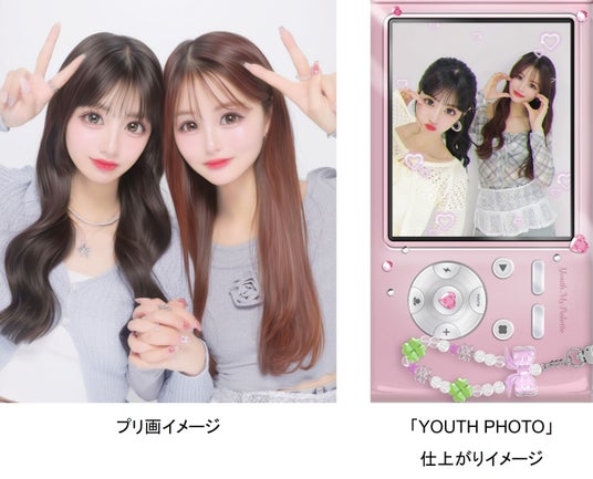 『YOUTH MY PALETTE』は、“とびきり可愛い私”も“自然体な私”も両方を一度の撮影で叶える最新プリ機です。“とびきり可愛い私”は、2023年に発売し人気を博した『MY PALETTE』の写りで実現。透明感と鮮やかさあふれる写りが復活し、ユーザー待望の仕上がりをお届けします。また、“自然体な私”を楽しめる仕掛けとしてトレンド感のある新機能を搭載。新機能「YOUTH PHOTO撮影」は、平成レトロブームでZ世代に人気のデジタルカメラ(以下デジカメ)やガラパゴス携帯(以下ガラケー)などの7種類のカメラ風フィルターから選んで撮影できる機能で、友達と笑い合う瞬間を切り取ったような自然体な雰囲気を映し出します。安定感ある写りと新しい撮影体験で、なりたい自分もありのままの自分も思いのままに。友達との“青春”を可愛く形に残します。