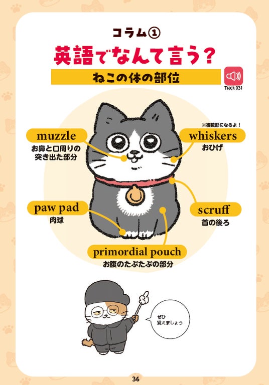 プンちゃんが英語を学ぶ様子を描いた描きおろしマンガを8ページ収録しています。ここでしか出会えないオリジナルキャラクターも登場。ねこおじファン必見の内容です。