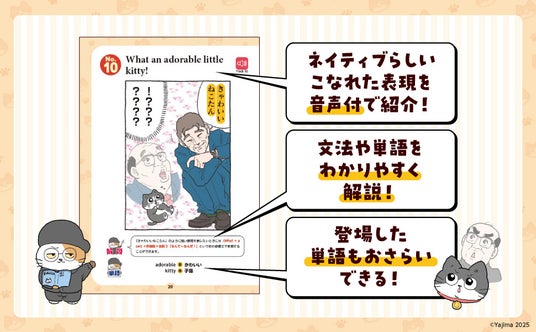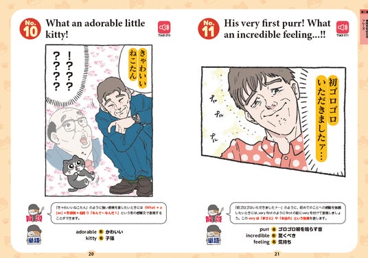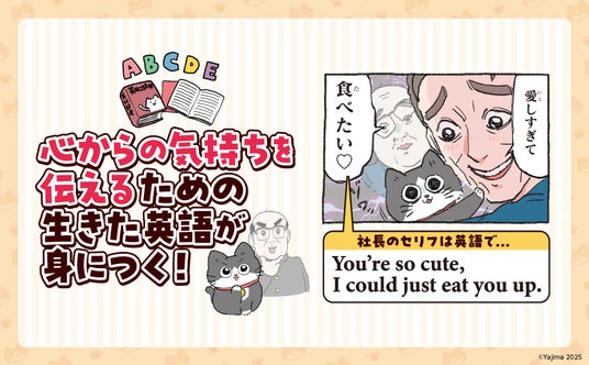 ■SNSで話題沸騰の人気マンガ『ねこに転生したおじさん』の名場面で、心からの気持ちを伝えるための「生きた英語」が学べる!