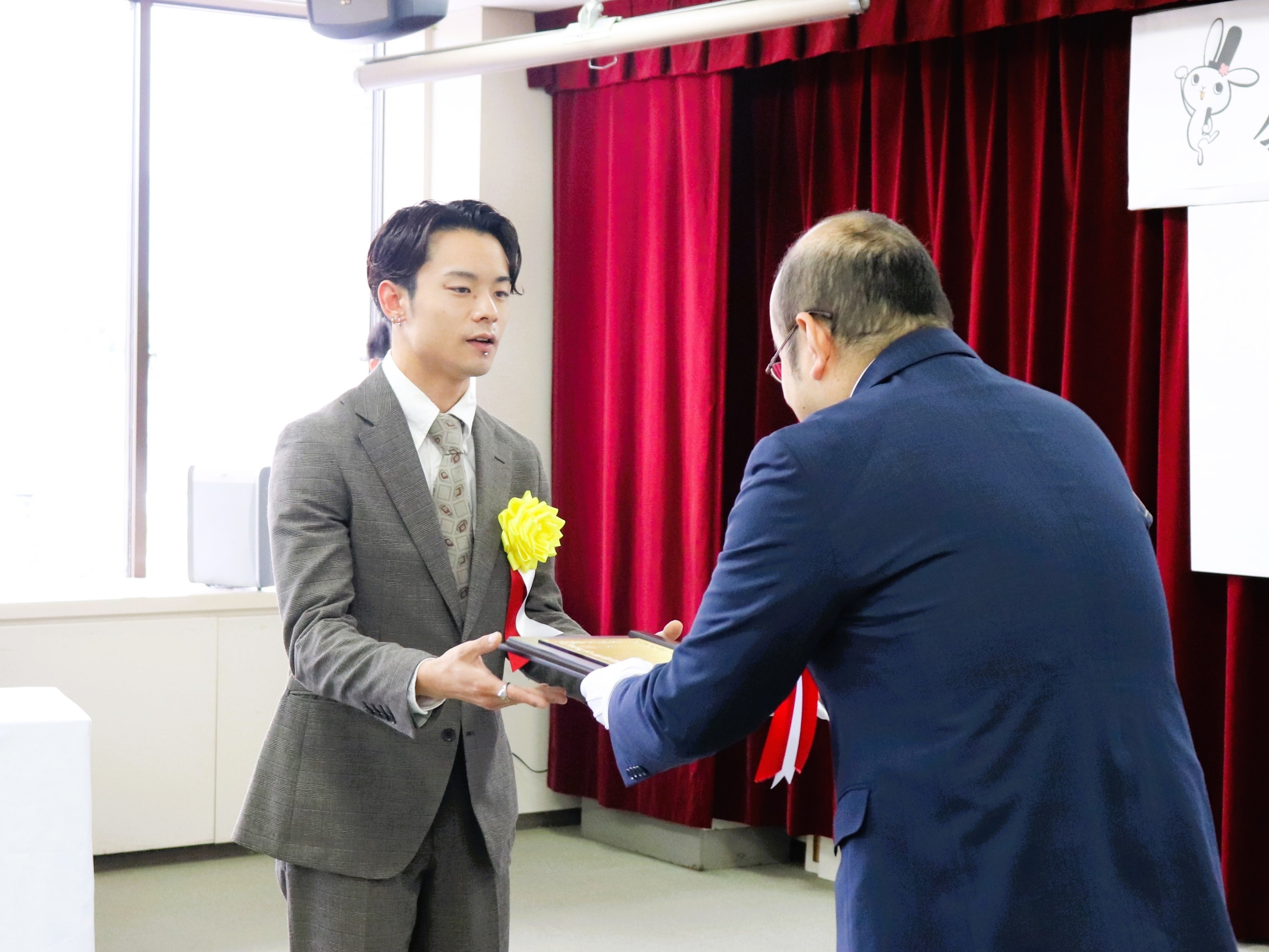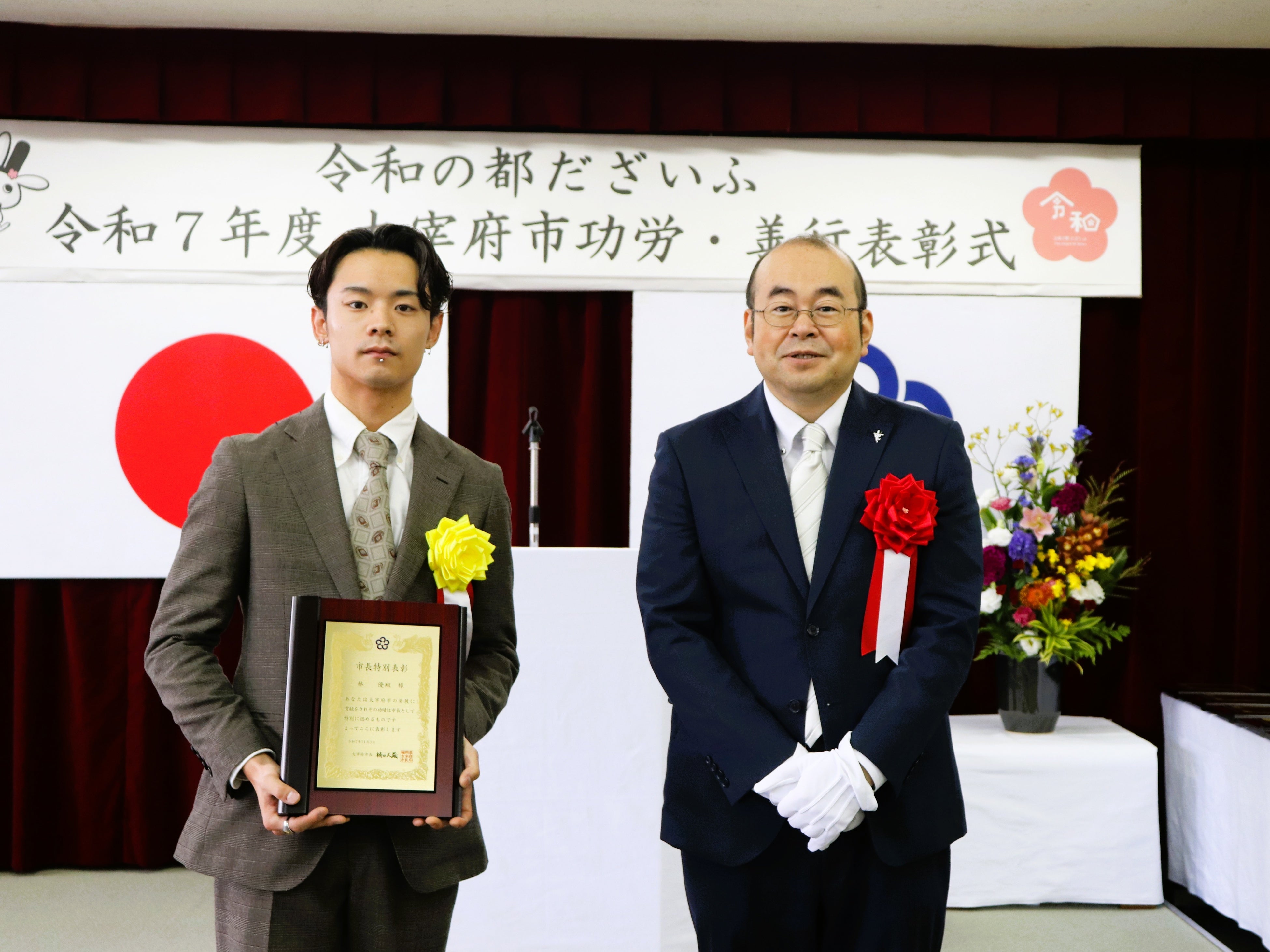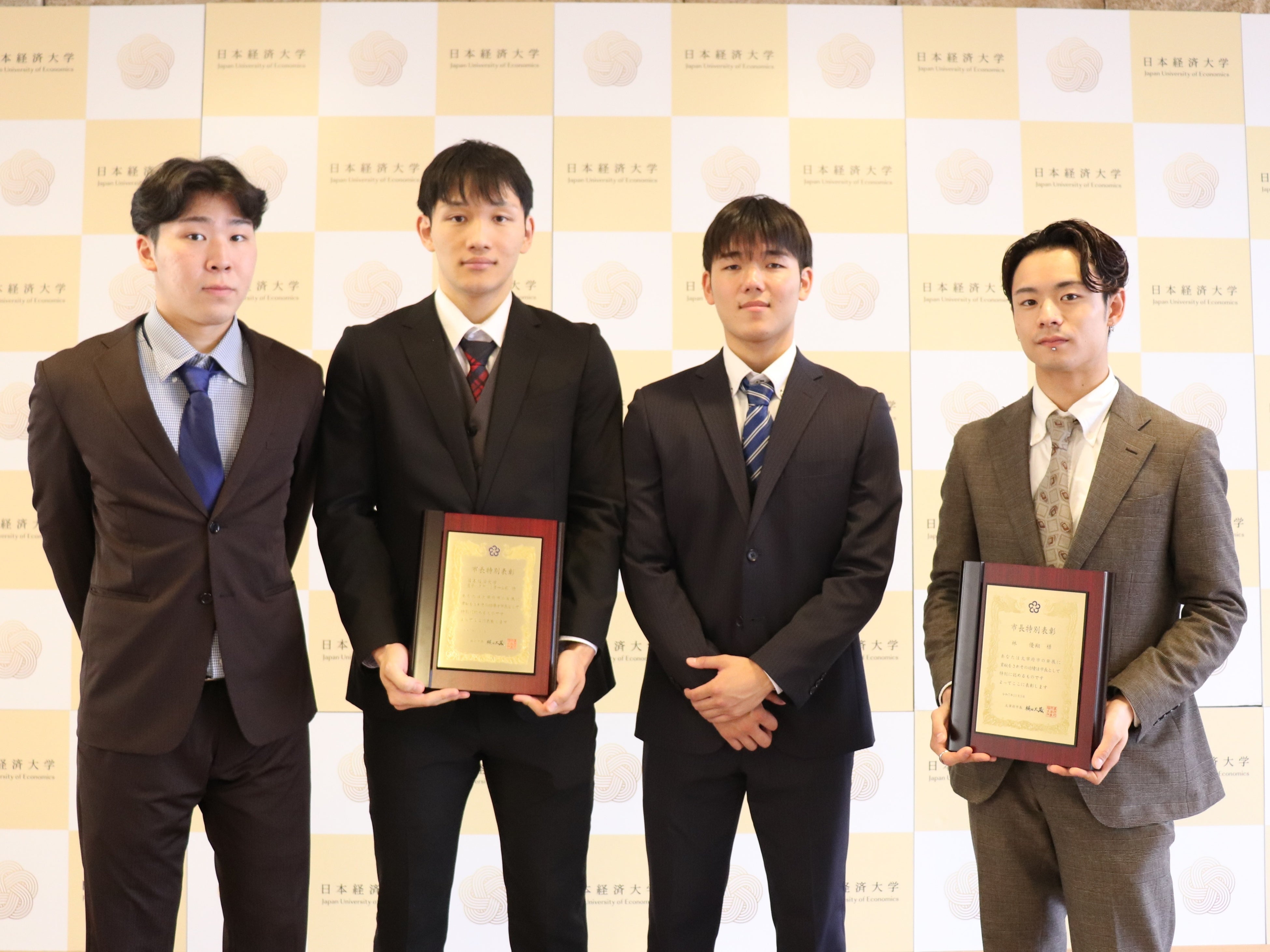 日本経済大学(福岡県太宰府市、学長:都築 明寿香)は、令和7年度 太宰府市功労・善行表彰式において、スポーツ活動において顕著な活躍を認められ、本学学生の林優翔さん(芸創プロデュース学科2年、一ツ葉高等学校博多キャンパス出身)および男子バスケットボール部が、太宰府市長特別表彰を受賞しました。なお、本学学生が同表彰を受賞するのは今回が初めてとなります。