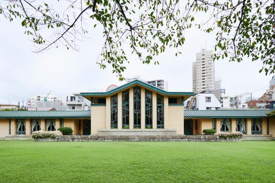 東京都豊島区、池袋の喧騒から一歩入った閑静な住宅街に佇む自由学園明日館は、近代建築の巨匠フランク・ロイド・ライトと、その弟子である遠藤新が設計を手がけた歴史的な名建築です。大正10年(1921年)に羽仁吉一・もと子夫妻によって創立された自由学園の旧校舎で、国の重要文化財に指定されています。水平線を強調したデザイン、窓枠や建具など細部にまで多用されている幾何学模様が、ライト建築の大きな特徴です。