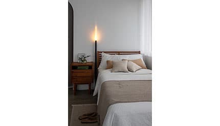 本体は重さ1.6kgと軽量で、T字型の台座とシリコン製の滑り止めで安定性を確保しているため、これまでフロアライトを置けなかったわずかな隙間にも、壁に寄り添うように設置できる。