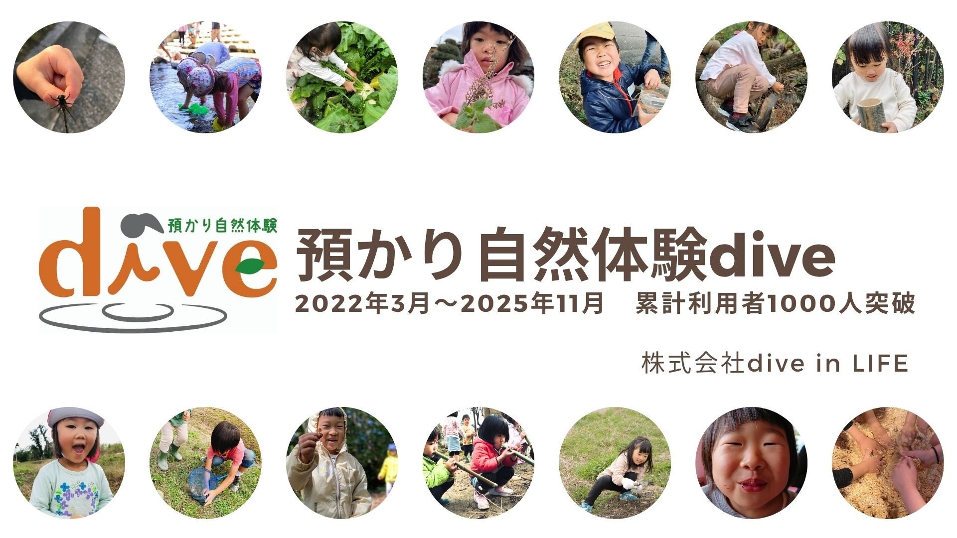 株式会社dive in LIFE(本社:滋賀県長浜市、代表取締役:熊谷理美)が運営する「預かり自然体験dive」は、2022年3月の開始以来、延べ参加者が累計1000人を突破しました。