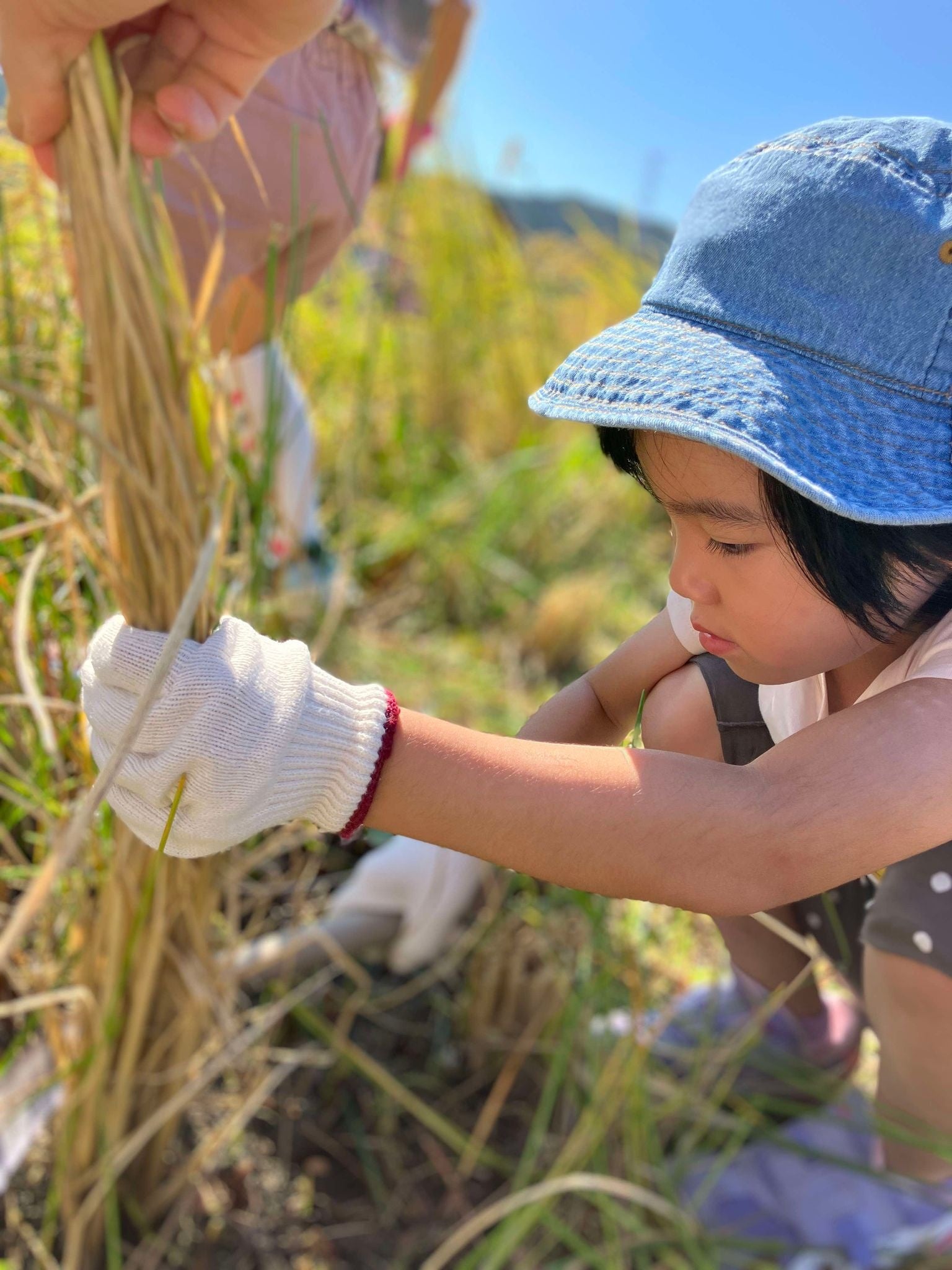 春に田植えをした田んぼで稲を刈る