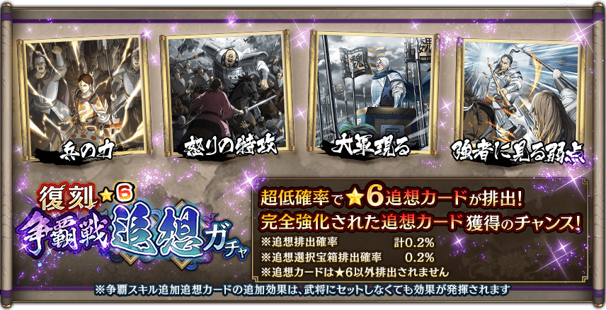 獲得することで対象武将に争覇スキルが解放される『争覇スキル追加追想カード』が排出されます!