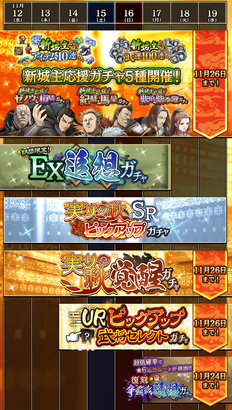 SR★4武将排出確率が通常時と比べて6倍にUPします!
