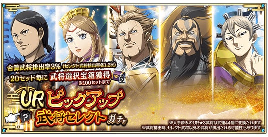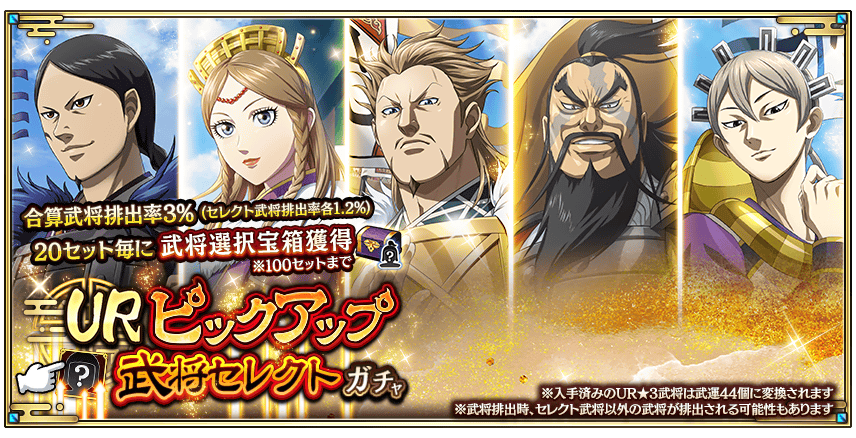 排出対象となる多数のUR武将から、排出確率を高めたい武将を任意に選べます!