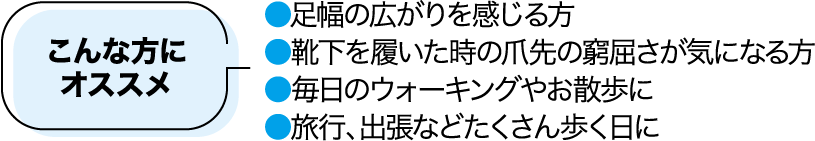 また、足の形状に合わせた左右設計により、爪先の縮こまりを軽減するなど、快適性にも配慮し