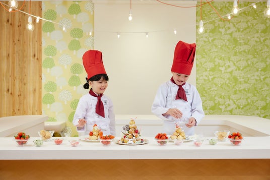 リゾナーレキッズスタジオでは、クリスマス期間限定のスイーツ作りを体験できます。期間限定のクリスマスカラーの衣装を身に着け、シュークリームをツリーのように組み合わせたシュークリームツリーを作ります。いちごやクリスマスらしいパーツを自由に飾り付ければ、オリジナルのシュークリームツリーが完成。完成したら家族全員で味わうことができ、クリスマスの思い出作りにもぴったりです。