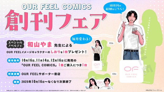 和山やま先生による[OUR FEEL]イメージキャラクターのしおりがもらえる創刊フェアも実施中。美麻りんサイン会も決定!