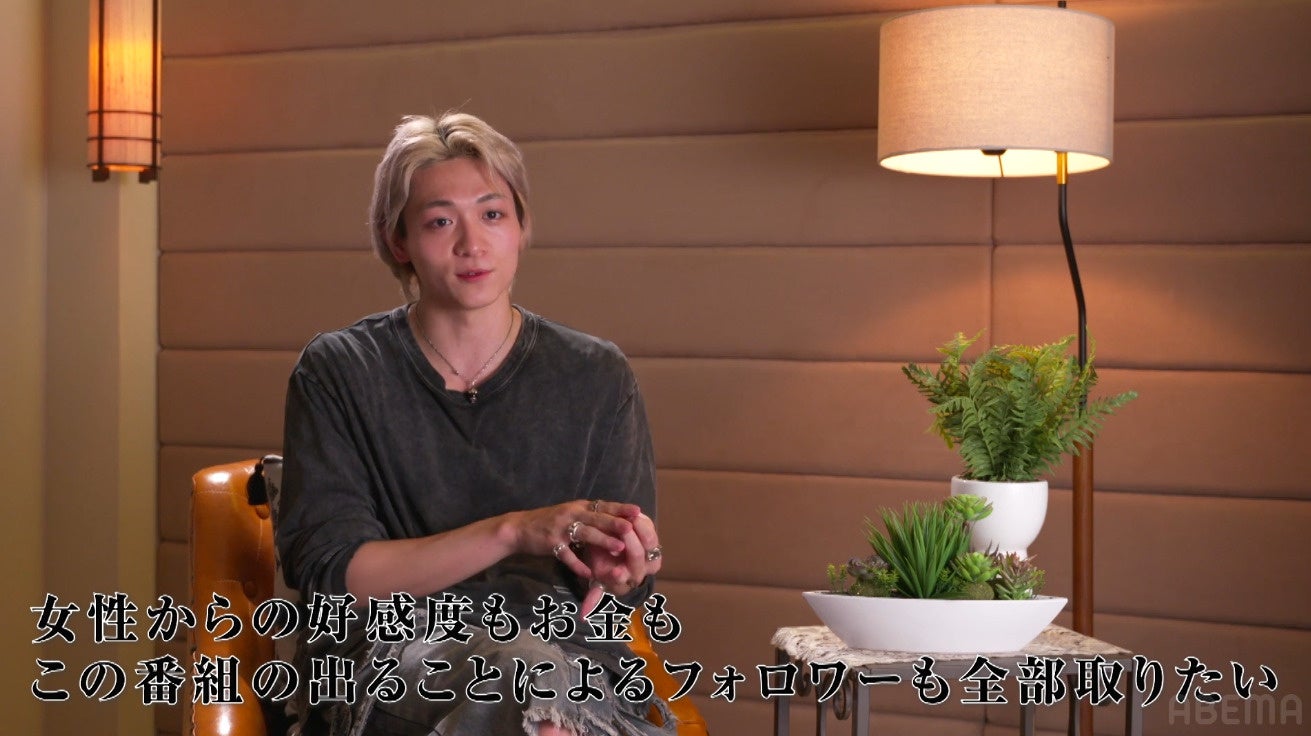 最終話では、さくらへの一途な姿を見せてきたいぶきが、まさかのマネーキャッチャー(賞金目当て)でスタジオを震撼させました。第2弾として、1000万円を手にした“マネーキャッチャー”いぶきの8日間の頭脳戦や心境に迫る特別インタビューを公開。「最後は裏切って“怖っ”って思わせたかった」と語るいぶきは、本編内での策略や駆け引きを赤裸々に告白。「マネー(キャッチャー)が成立しすぎると僕の分が減る」と冷静に分析しつつ、マネーキャッチャーと検討がついた女性参加者も寄せ付け、取り分を減らさないよう巧みに立ち回っていたことも明かしました。「女性からの好感度もお金も、この番組で得られるものは全部取りたい」と本音を明かす一方で、「本心は好き、さくらちゃんを見てると照れる」とさくらへの本心も垣間見せます。賞金1000万円を獲得し、マネーとしての役割を見事に全うしたいぶきが、その一方で「私情を出しちゃった部分で徹底しきれてなかった」と反省する一幕も。果たして、彼の8日間の選択と本心はどのようなものだったのか…。