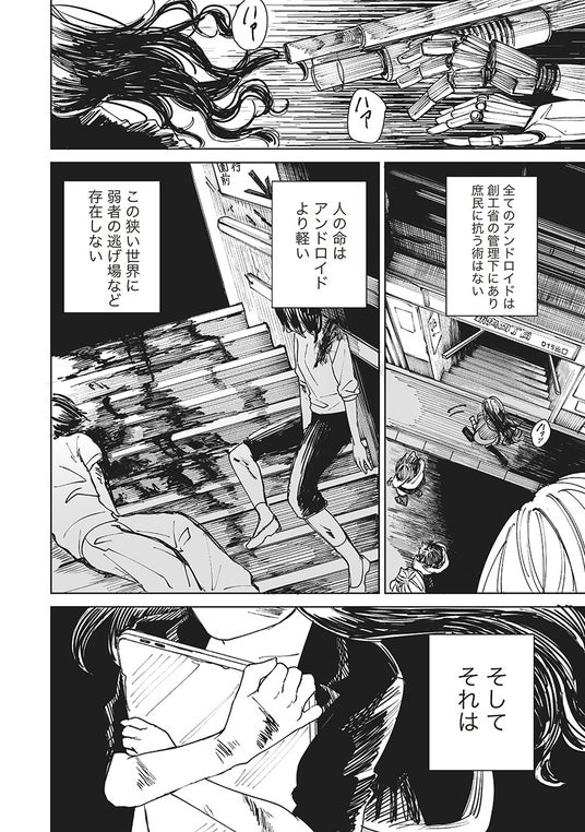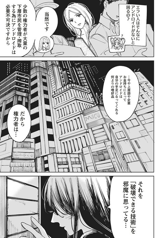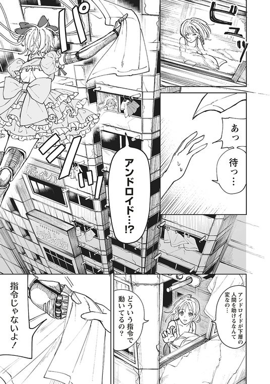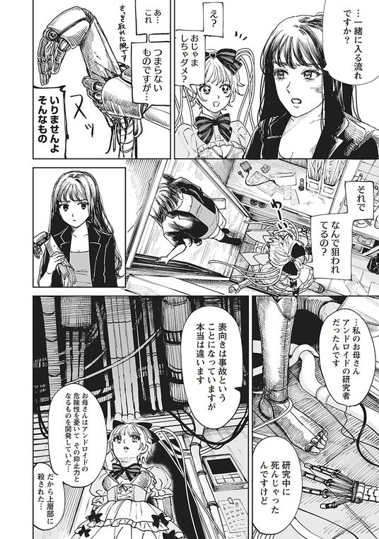 ある日、全てのアンドロイド根絶を願う下層市民の技術者ミヤモトは、ロリータファッションに身を包む奇妙なアンドロイド「りぼんちゃん」と出会い──!?