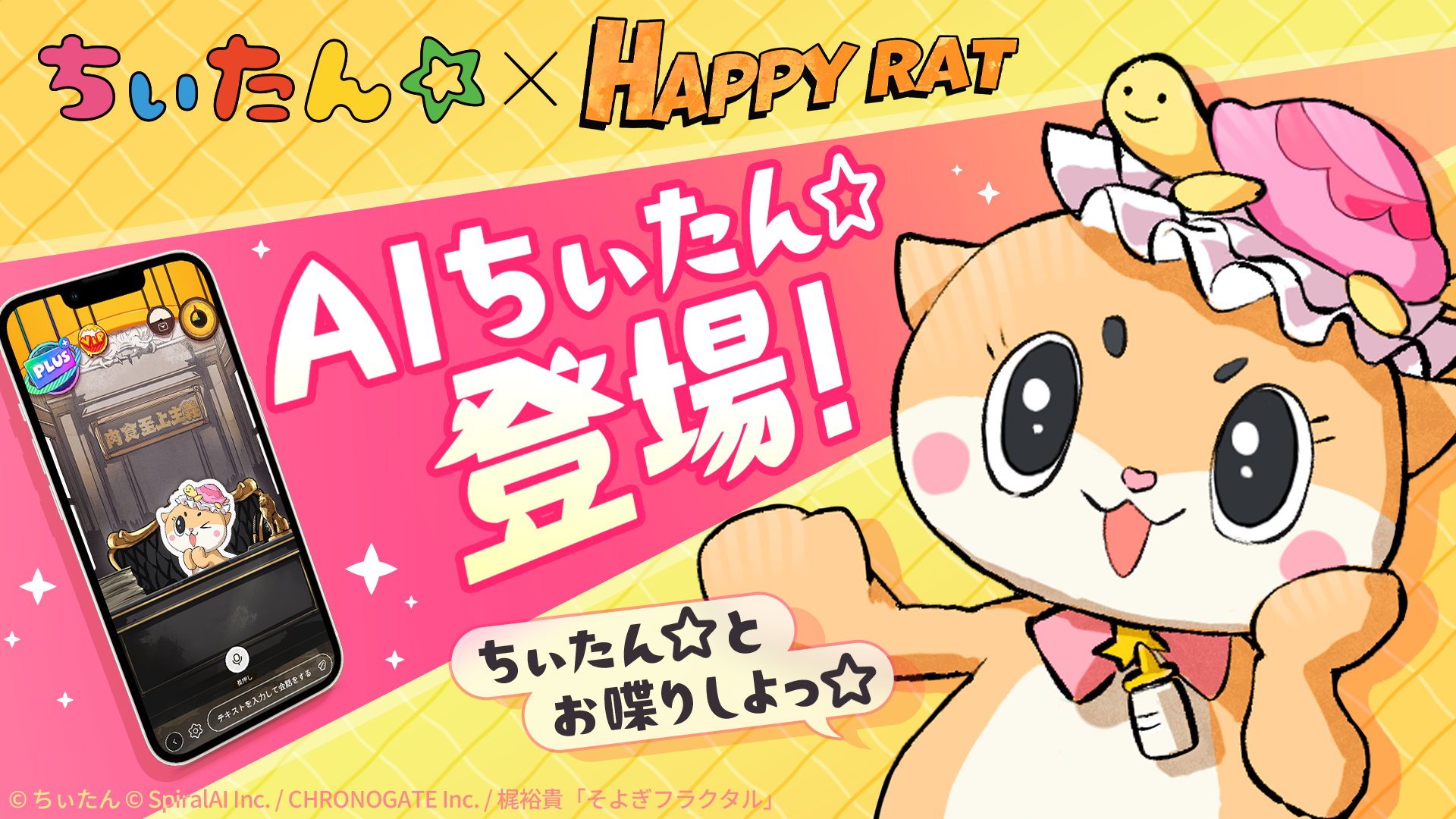 【 AIちぃたん☆ 爆誕!】「ちぃたん☆」と2人きりでハチャメチャおしゃべりを楽しめる!? 声優・梶裕貴さんプロデュースの会話型友だちAIアプリ『HAPPY RAT』に期間限定で登場!