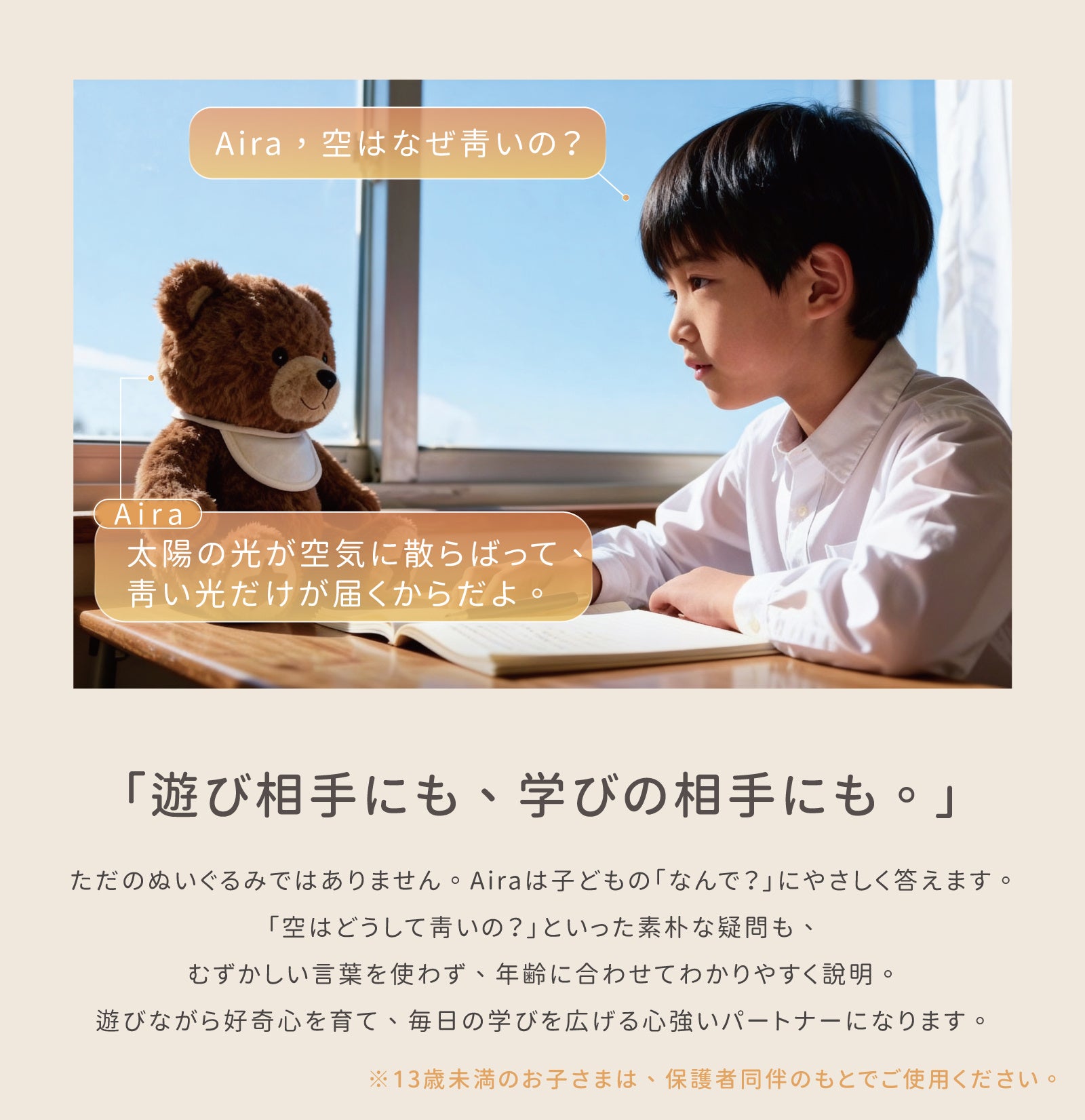 「話しかけるだけで心がほぐれる」AIくまAira(アイラ)がMakuakeに登場 孤独な時間に寄り添う、癒しと温もりのパートナー